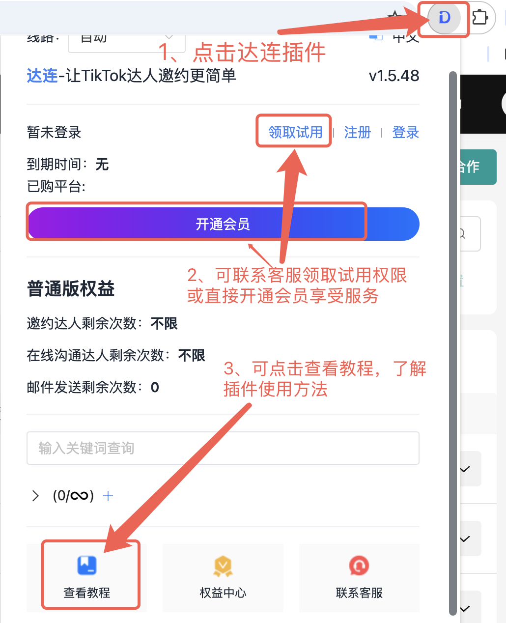 第4步中的url: https://chromewebstore.google.com/detail/%E8%BE%BE%E8%BF%9E-%E8%AE%A9tiktok%E8%BE%BE%E4%BA%BA%E9%82%80%E7%BA%A6%E6%9B%B4%E7%AE%80%E5%8D%95/acnbdmcfjdpojblohmiggmenhofldghk?hl=zh-CN&utm_source=ext_sidebar